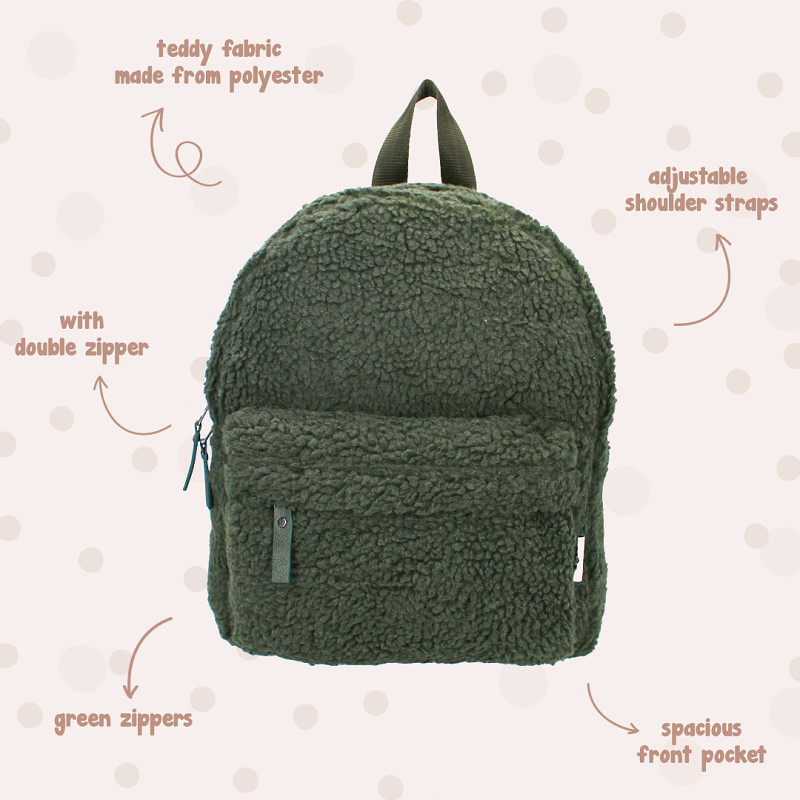 Esta pequeña mochila de la colección Be soft and Kind de Prêt es perfecta para llevar a todas partes. En el gran compartimento principal puedes llevar una fiambrera y una botella de agua, y en el pequeño bolsillo delantero con cremallera puedes guardar las cosas que no quieras perder. Esta mochila está confeccionada con un tejido de peluche súper suave, ¡que la completa! Las correas de los hombros son ajustables para que siempre se adapte bien a tu hijo.