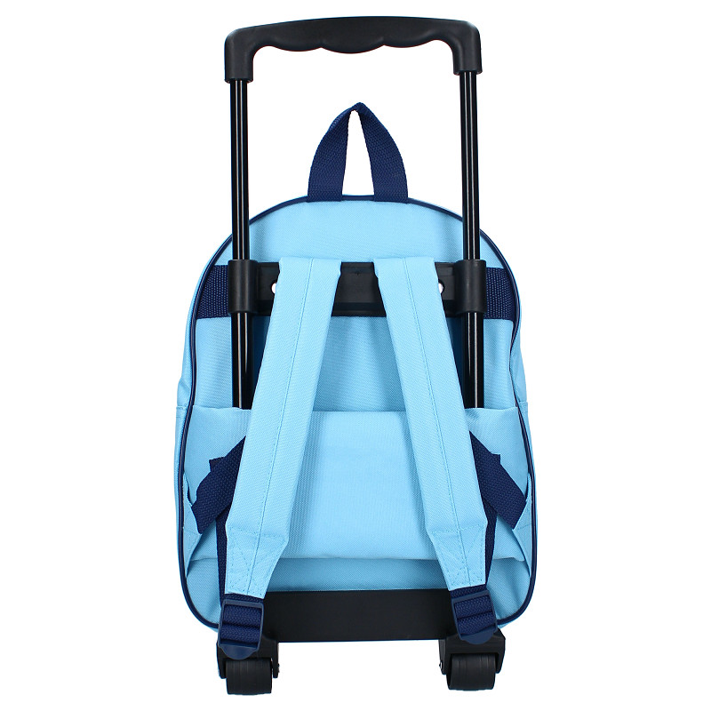 Deze trolley uit de Oh Happy Days collectie is ideaal voor alle Bluey fans! De trolley is blauw/wit van kleur en op het voorvak staat een grote print van Bluey en Bingo. Het hoofdvak biedt voldoende ruimte voor bijvoorbeeld toiletpullen, speelgoed en zwemspullen. Bovenaan de trolley is een handvat zodat de trolley aan de hand gedragen kan worden. Ook is er een uittrekbaar handvat. Doormiddel van de wieltjes is de trolley gemakkelijk voor te trekken.