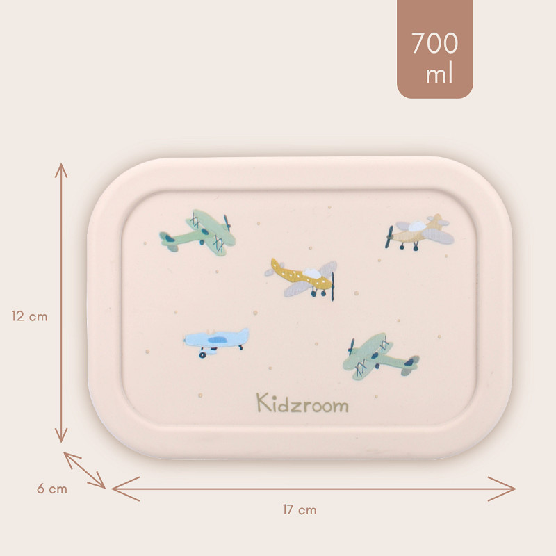 Deze prachtige lunchbox van Kidzroom uit de 'Small Talk' collectie is een echte must-have voor kinderen. De lunchbox heeft een stijlvolle beige kleur en is versierd met een vliegtuigprint. Dankzij het zachte siliconenmateriaal is de lunchbox eenvoudig te openen en te sluiten, perfect voor kleine kindjes. De binnenkant is slim ingedeeld in drie compartimenten, zodat je alle onderdelen van de lunch netjes en vers kunt houden. Door het silicone materiaal kan hij in de magnetron en in de vaatwasser. Praktisch én schattig! Voeg deze betoverende lunchbox van Kidzroom vandaag nog toe aan je assortiment. Bekijk en shop ook de bijpassende drinkbeker en rugzak van de ‘Small Talk’ collectie om de set compleet te maken.
