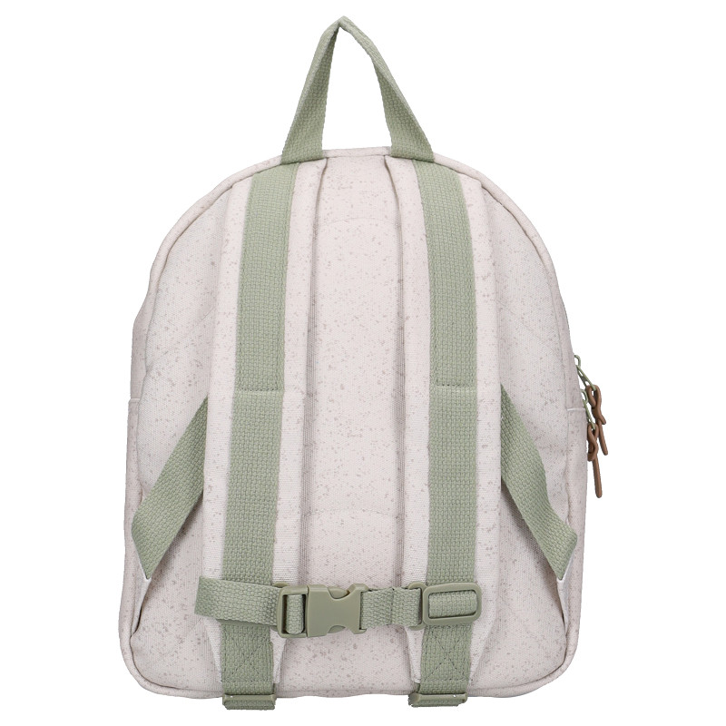 Dit leuke beige rugzakje uit de Nostalgia-collectie is perfect voor elk avontuur en een echte must-have voor je kindje. De tas is gemaakt van gerecycled polyester en vrolijk versierd met een stoere all-over dinoprint. beschikt over een praktisch voorvak met rits voor kleine spulletjes. Het ruime hoofdvak met dubbele rits biedt voldoende ruimte voor een broodtrommel en drinkfles, ideaal voor school of een dagje uit. De rugzak beschikt over een praktisch voorvak met rits voor kleine spulletjes en kan gedragen worden aan de stevige lus aan de bovenzijde of comfortabel op de rug met de verstelbare schouderbanden. Dankzij de handige gespen op de schouderbanden blijft het rugzakje altijd stevig en prettig zitten. Binnenin is de tas voorzien van een naamlabel en een houder voor een drinkfles, zodat alles netjes op zijn plek blijft. Een vrolijk en praktisch rugzakje waar je kindje elke dag plezier van zal hebben!