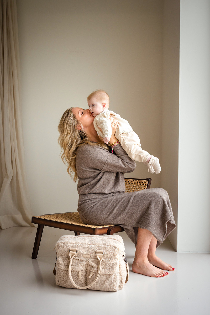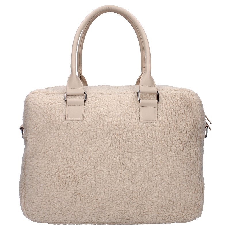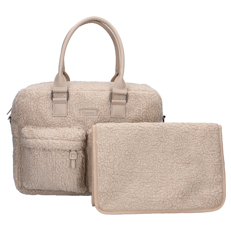 Ga je met een baby op pad? Dan moet je heel wat meenemen. Als ouder kan je daarom niet zonder een goede luiertas van Kidzroom uit de collectie Hello Little One. In deze super leuke luiertas met teddy stof passen alle luiers, hydrofiele doeken, extra kleding, flesjes, hapjes en speentjes die je onderweg voor je baby nodig hebt. De tas heeft twee ruime voorvakken voor de spulletjes die je even snel wilt kunnen pakken. Daarnaast is het grote hoofdvak voorzien van een dubbele rits, waardoor je overal makkelijk bij kunt. In de luiertas zit een bijpassend verschoonmatje om altijd en overal je kindje te verschonen. De luiertas draag je mee aan de handvatten aan de bovenkant of over je schouder middels de verstelbare en afneembare schouderband. Ook is de luiertas voorzien van lussen om de tas eenvoudig aan de kinderwagen te hangen. Het verschoningsmatje heeft een formaat van 64 x 32 cm en heeft een makkelijk afneembare binnenzijde.