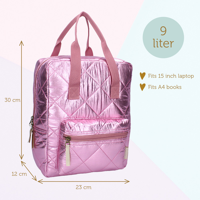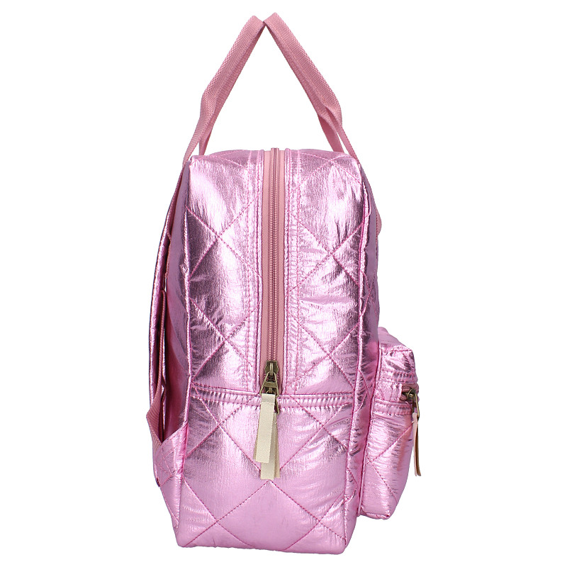 Ontdek de stijlvolle rugzak van Milky Kiss uit de 'Lush Life' collectie, een perfecte combinatie van stijl en functionaliteit! Deze rugzak is ontworpen om je dag op te fleuren met zijn coole roze metallic look. De tas heeft een groot hoofdvak met dubbele ritssluiting en biedt voldoende ruimte voor al je benodigdheden. Plus een voorvak met ritssluiting wat zorgt voor extra opbergmogelijkheden voor kleine items. De verstelbare schouderbanden zorgen voor ultiem draagcomfort, terwijl het roze hengsel aan de bovenkant extra draaggemak biedt. Of het nu gaat voor een schooldag of een dagje uit, deze rugzak van Milky Kiss zal zeker de aandacht trekken!