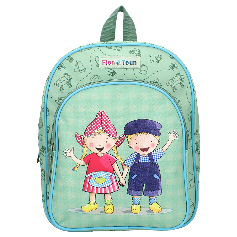 Deze leuke tas van Fien en Teun uit de Dierenvriendjes collectie is ideaal voor alle fans van de twee boerderij kinderen. Deze rugzak is groen van kleur en heeft een grote print van Fien en Teun op het voorvak. Verder heeft het voorvak een geruite print. Het hoofd- en voorvak sluiten beide met een rits. Ook heeft de rugzak een handige lus en verstelbare schouderbanden. Zo is de tas voor iedereen op maat te maken. Samen met hun dierenvriendjes beleven Fien en Teun fantastische avonturen! De collectie bestaat uit verschillende gymtassen en rugzakken.