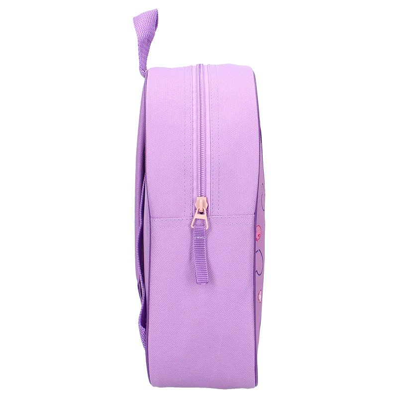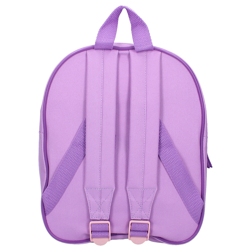 Deze superleuke rugzak van Hello Kitty and Friends uit de ‘Cheeky But Charming’ collectie is perfect voor alle avonture! De tas heeft een prachtige paarse kleur met een speelse Kuromi-print op de voorkant. Het ruime hoofdvak biedt voldoende ruimte voor alle dagelijkse benodigdheden en is eenvoudig te openen en te sluiten dankzij de stevige ritssluiting. Deze rugzak kan op verschillende manieren worden gedragen: de verstelbare schouderbanden zorgen voor optimaal draagcomfort, terwijl de glitterlus aan de bovenkant het mogelijk maakt om de tas gemakkelijk in de hand te dragen of op te hangen. Ideaal om je kleintje elke dag stijlvol en praktisch naar school te laten gaan!