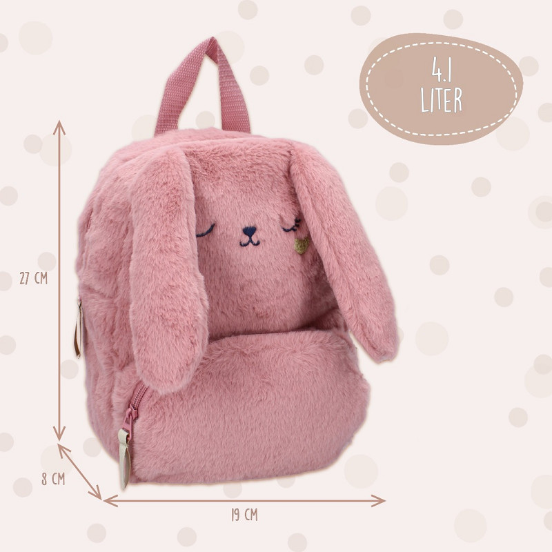 Deze leuke en speelse rugzak van Prêt uit ‘The Adorabels’ collectie is paars van kleur. De rugzak is super zacht en heeft een konijnengezichtje en twee zachte oren op de voorkant De tas heeft een hoofd- en voorvak die beide sluiten met een gouden rits. Verder is er een lus bovenaan de rugzak zodat de tas ook aan de hand te dragen is. De schouderbanden zijn gemakkelijk te vertellen en voor iedereen op maat te maken.