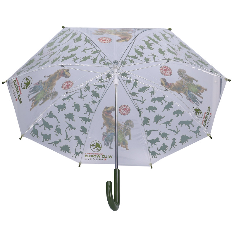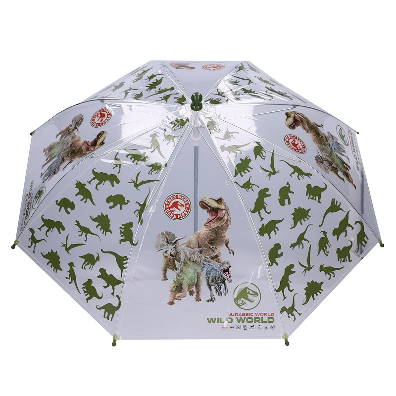 Met deze vrolijke paraplu van Jurassic World uit de ‘Rainy Days’ collectie, wordt in de regen lopen een echt feestje! De paraplu is uitgevoerd in groene en transparante banen en voorzien van een stoere Dino-print. Het ronde handvat ligt comfortabel in de kinderhand en dankzij de lichte constructie is de paraplu eenvoudig zelf open en dicht te klappen. De dopjes aan het uiteinde van de baleinen zorgen ervoor dat je kindje zich niet kan bezeren. Praktisch, veilig én superstoer, perfect voor elke kleine Jurassic World-fan!