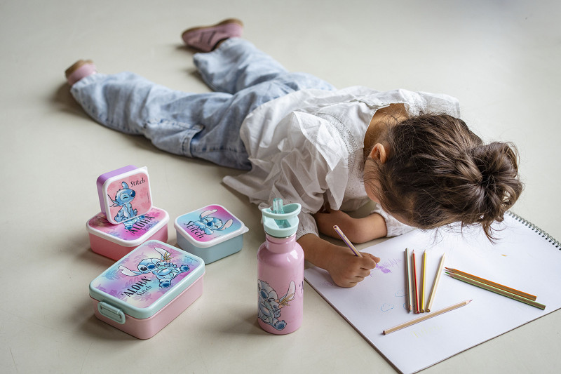 Stitch blijft populair en mag natuurlijk niet ontbreken! Ontdek daarom deze leuke drinkfles uit de 'Take A Sip'-collectie. De drinkfles is roze van kleur en is bedrukt met een afbeelding van Stitch die over de hele fles te zien is. De fles heeft een inhoud van 500 ml en is voorzien van een blauwe draaidop voor eenvoudig vullen. Dankzij de uitklapbare tuit met rietje kan elk kind zelfstandig uit deze fles drinken. Ideaal dus voor alle jonge kinderen om mee naar school te nemen. Dit product is BPA-vrij en niet geschikt voor de vaatwasser, magnetron of oven.