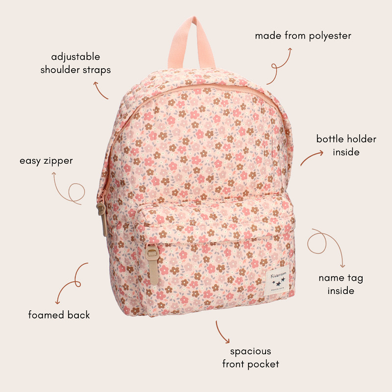 Dit schattige roze rugzakje met bloemenprint is perfect voor elk avontuur! De rugzak uit de betoverende Magical Meadows-collectie zal ongetwijfeld het favoriete accessoire van je kindje worden. De rugtas is versierd met een vrolijke all-over bloemenprint en heeft een praktisch voorvak met rits voor kleine spulletjes die mee moeten. Het ruime hoofdvak, voorzien van een dubbele rits, biedt voldoende ruimte voor bijvoorbeeld een broodtrommel of een extra setje kleding. Ideaal voor naar school of een dagje uit! De rugzak kan gedragen worden aan de lus aan de bovenkant of comfortabel op de rug met de verstelbare schouderbanden. De rugzak is voorzien van veiligheidsgespen om hem gemakkelijk te kunnen sluiten.