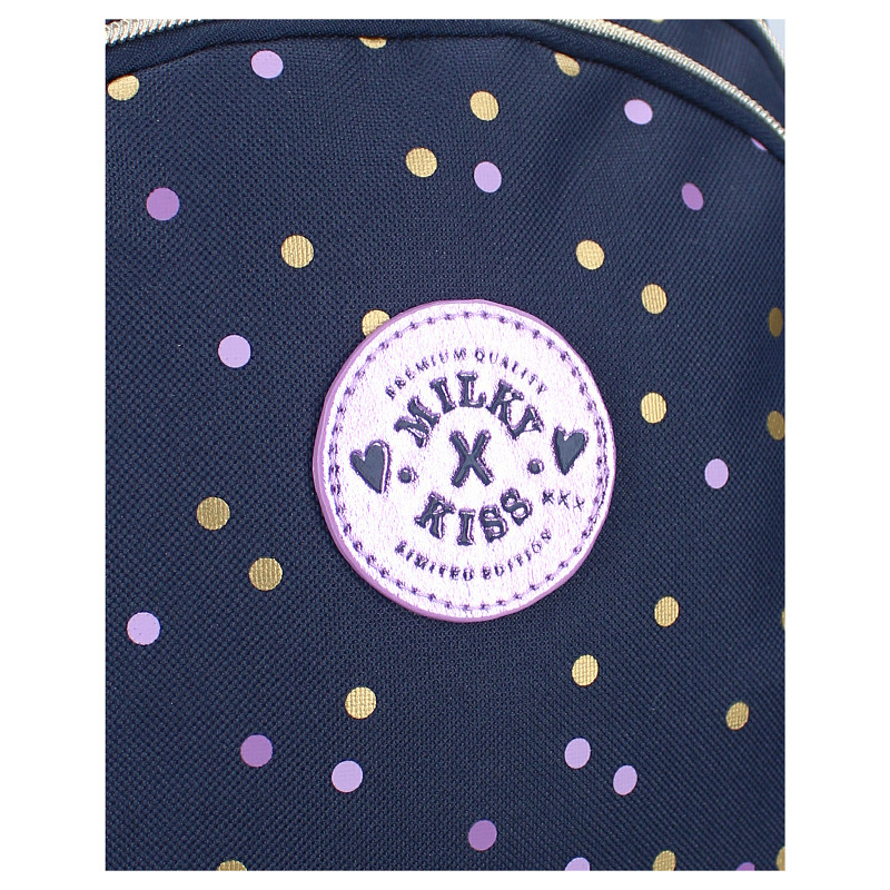 Ontdek de magie van deze rugzak van Milky Kiss uit de Dotted Delight collectie. De tas heeft een donkerblauwe kleur met leuke paars en gouden stippen. Het hoofdvak van de rugzak is ruim en perfect voor het opbergen van alle benodigdheden, terwijl de twee extra voorvakken zorgen voor gemak voor kleinere items. De hoogwaardige ritssluitingen zorgen voor veilige opslag, terwijl de gewatteerde en verstelbare schouderbanden zorgen voor ultiem draagcomfort, zelfs tijdens lange dagen onderweg. Of het nu gaat om een dagje op school of een uitje met vrienden, deze rugzak is de perfecte keuze voor jonge trendsetters die op zoek zijn naar stijl en functionaliteit in één.
