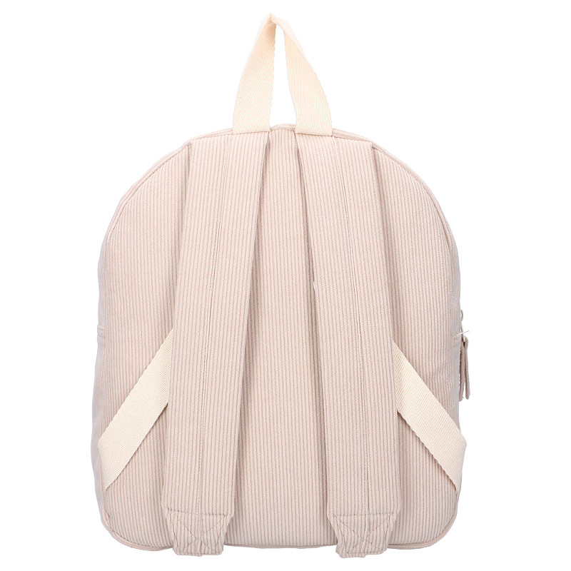 Deze trendy rugzak van Prêt komt uit de ‘Ridge And Row’ collectie en is een echte must-have! De beige tas is gemaakt van zachte ribstof en biedt voldoende ruimte voor alle dagelijkse spulletjes. Het hoofdvak sluit net als het voorvak, met een stevige ritssluiting. Aan de bovenkant zit een handige lus om de tas makkelijk op te hangen. De verstelbare schouderbanden zorgen ervoor dat de rugzak comfortabel zit en perfect past bij ieder kind.