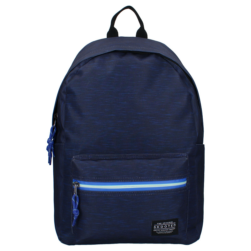 Deze stoere rugzak van Skooter uit de Not Your Business collectie is donkerblauw van kleur. De tas biedt voldoende ruimte voor bijvoorbeeld schoolspullen. Het ruime hoofdvak sluit met een blauwe rits. De rugzak heeft ook een handig voorvakje die ook sluit met een rits. Verder is er een lus bovenaan de rugzak zodat de tas ook aan de hand te dragen is. De schouderbanden zijn gemakkelijk te vertellen en voor iedereen op maat te maken.
