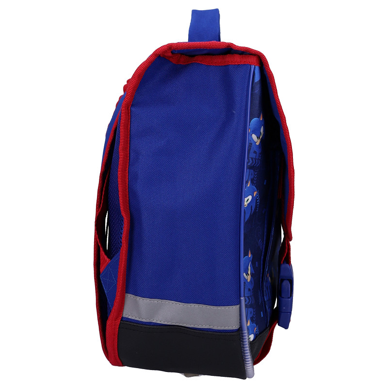 Deze stoere schoolrugzak van Sonic heeft een ruim hoofdvak met twee compartimenten, perfect voor al je schoolspulletjes. In het voorvak kun je kleine benodigdheden makkelijk kwijt. De tas is versierd met een grote print van Sonic the Hedgehog. Dankzij de verstelbare schouderbanden draagt de rugzak extra comfortabel, en met de blauwe klikgespen sluit je de tas stevig af. Of je nu naar school gaat of een dagje uit gepland hebt, met deze tas aan je zijde beleef je elk avontuur in Sonic-stijl!