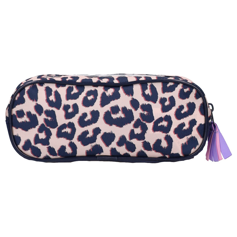 Het Studio V Leopard Luxe etui is de perfecte match bij de bijpassende rugzak. De stijlvolle luipaardprint en luxe afwerking geven dit etui een trendy uitstraling die elke schooldag opfleurt. Het etui biedt voldoende ruimte voor pennen, potloden en andere schrijfwaren en houdt alles netjes georganiseerd. Een praktisch én modieus accessoire voor school, huiswerk en creatieve momenten.