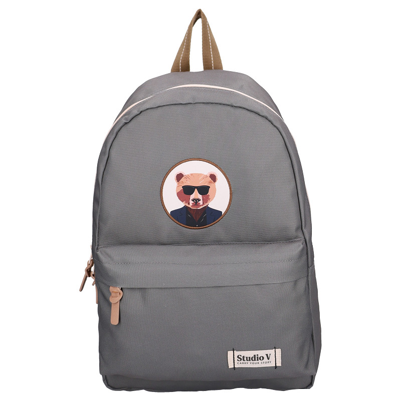 De Studio V Bear Business rugzak combineert een rustige, moderne uitstraling met een speels detail. De stijlvolle grijze kleur krijgt karakter door de unieke bear-patch met zonnebril, wat zorgt voor een stoere maar vriendelijke look. De rugzak is ideaal voor dagelijks gebruik en biedt voldoende ruimte voor schoolspullen, een lunchbox en andere benodigdheden. Dankzij het comfortabele ontwerp is deze tas perfect voor school, uitstapjes en elke dag onderweg. Een praktische en trendy keuze voor kinderen die houden van een subtiele, coole stijl.