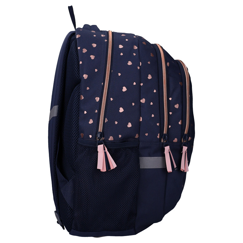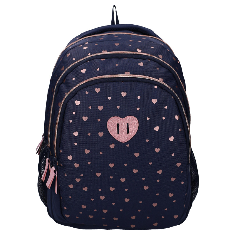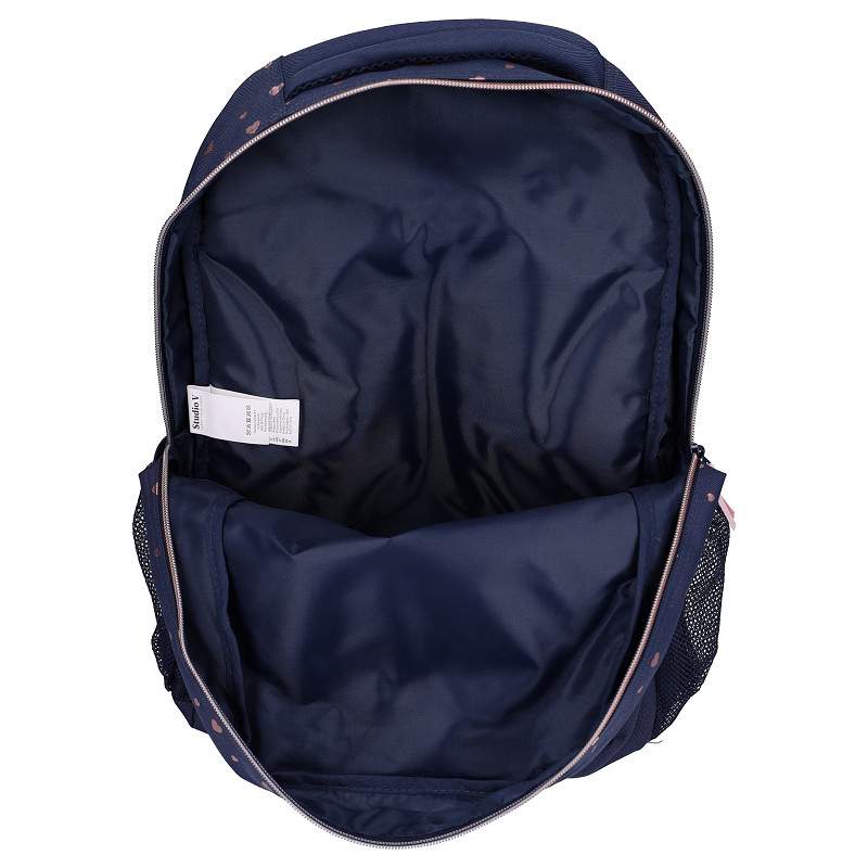 De Studio V Cute Heartbeat rugzak is perfect voor kinderen die houden van een schattige en stijlvolle look. Het donkerblauwe design met kleine hartjes en het glinsterende hartdetail geven de tas een lieve, maar toch moderne uitstraling. De zachte roze accenten zorgen voor een speelse touch. De rugzak biedt voldoende ruimte voor schoolspullen, een lunchbox en andere dagelijkse benodigdheden. Dankzij de comfortabele schouderbanden en het praktische ontwerp is deze tas ideaal voor school, uitstapjes en dagelijks gebruik. Een fijne combinatie van functionaliteit en een liefdevol design.