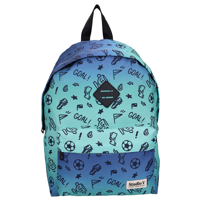 De Studio V Kick Off rugzak is perfect voor jonge sportliefhebbers die elke dag vol energie beginnen. De speelse sportprints met voetballen, fluitjes en het woord GOAL! geven de tas een dynamische en vrolijke uitstraling die direct in het oog springt. Deze rugzak is ideaal voor school en vrije tijd en biedt voldoende ruimte voor schoolspullen, een lunchbox en andere dagelijkse benodigdheden. Dankzij het comfortabele ontwerp is hij prettig om te dragen tijdens schooldagen, sportactiviteiten en uitstapjes. Een praktische en stoere rugzak voor kinderen die altijd klaar zijn voor de aftrap.